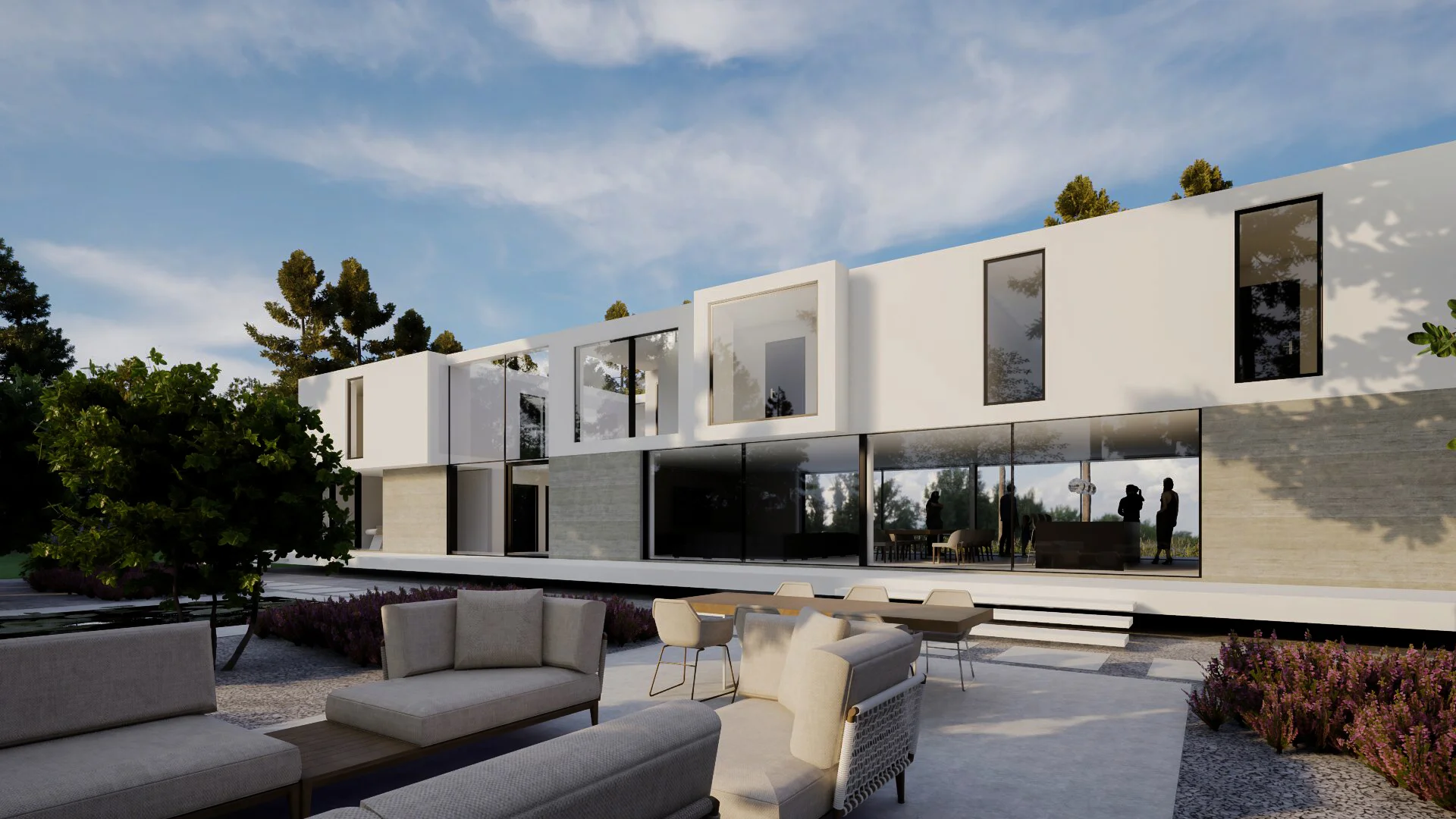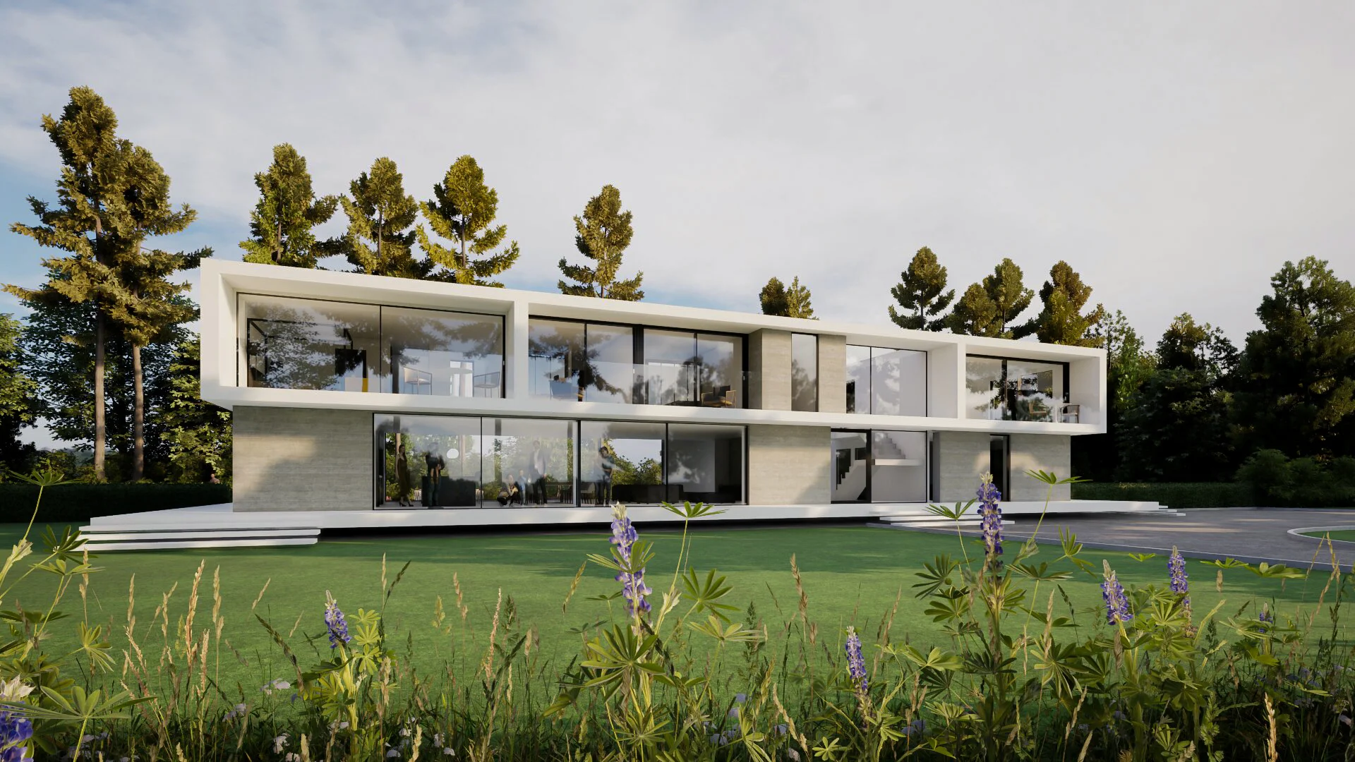 The first floor is split into two sides, the first of which incorporates a guest suite with private balcony. A bridge access leads to the three family bedrooms, the master having a private balcony whereas the junior bedrooms sharing a balcony.