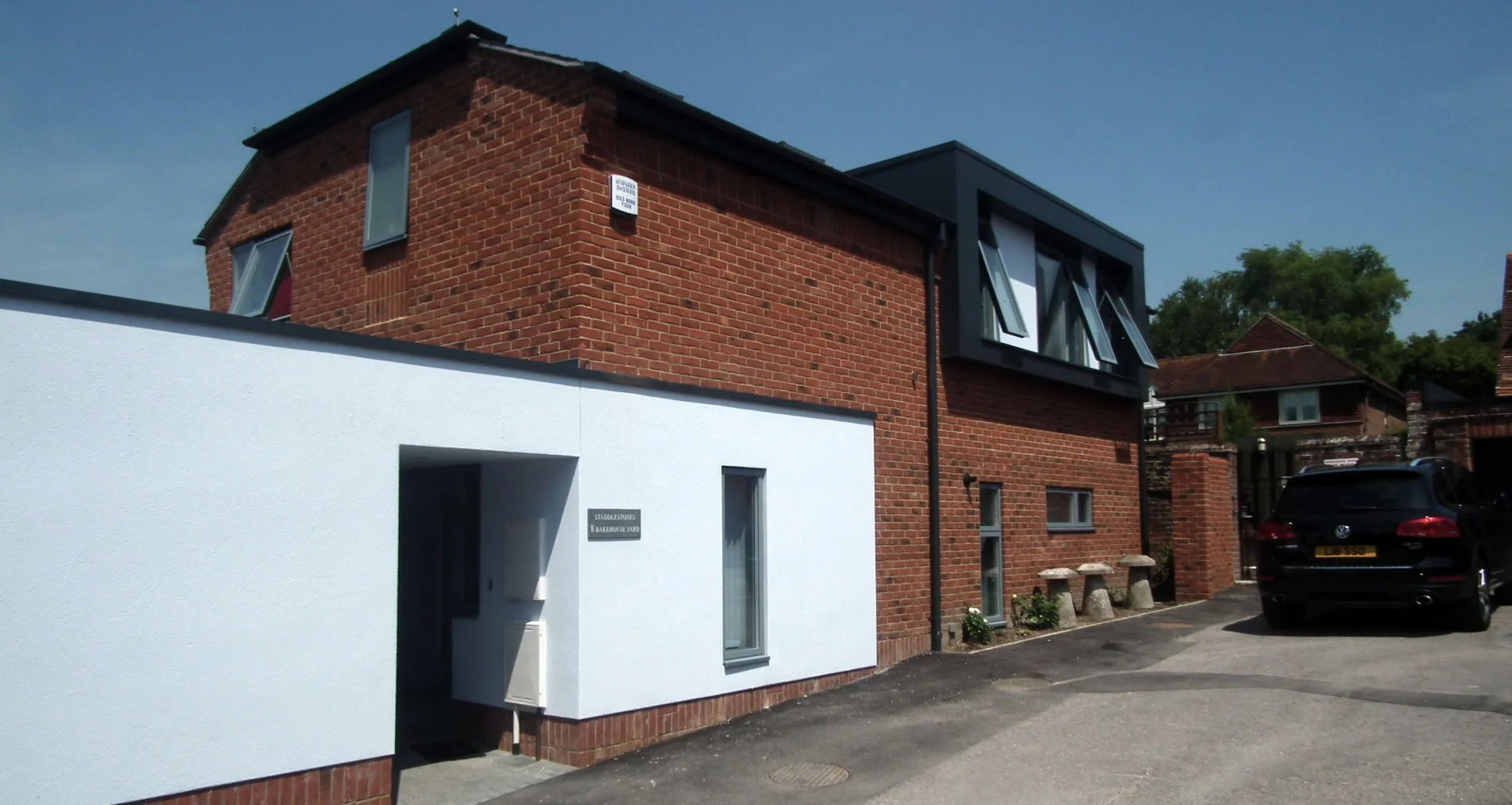 The house is on a brownfield site in the centre of Alresford. It had previously been occupied by a derelict storage building and car park which served the adjacent house where the client had previously lived.