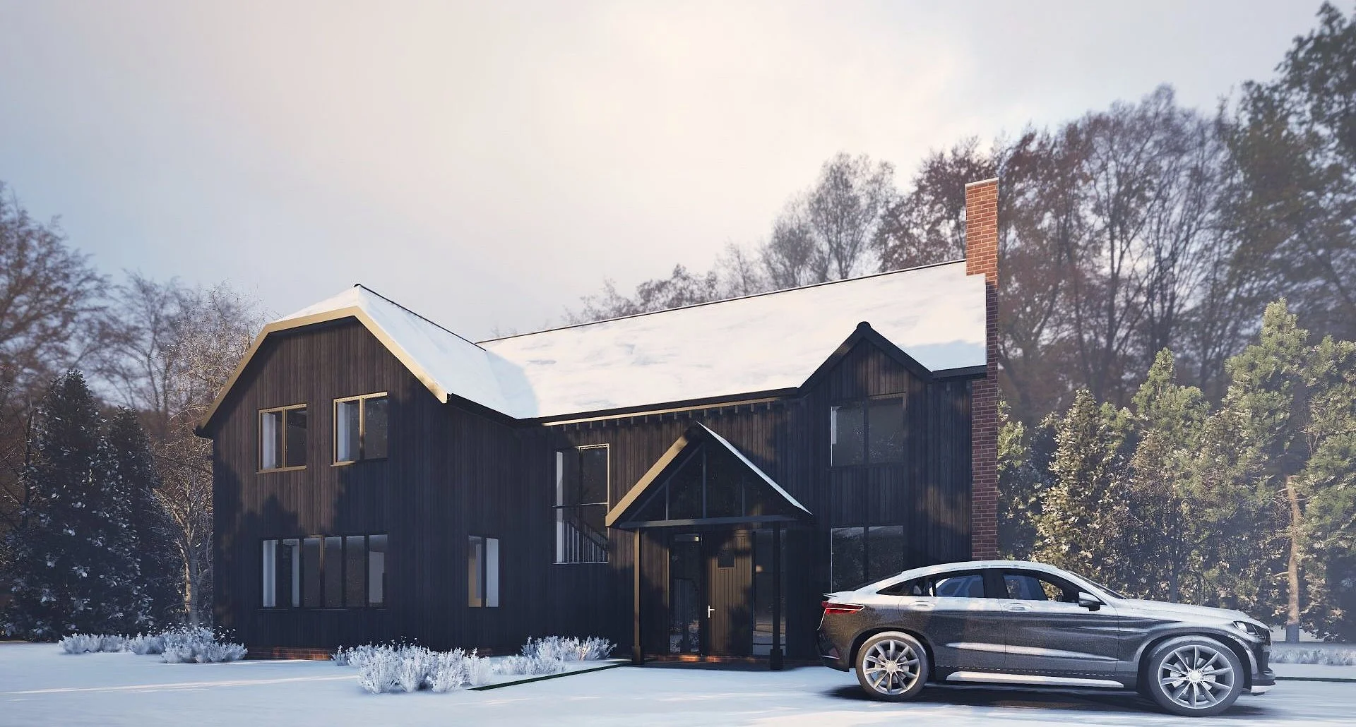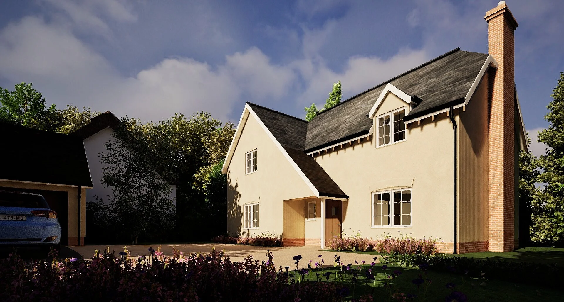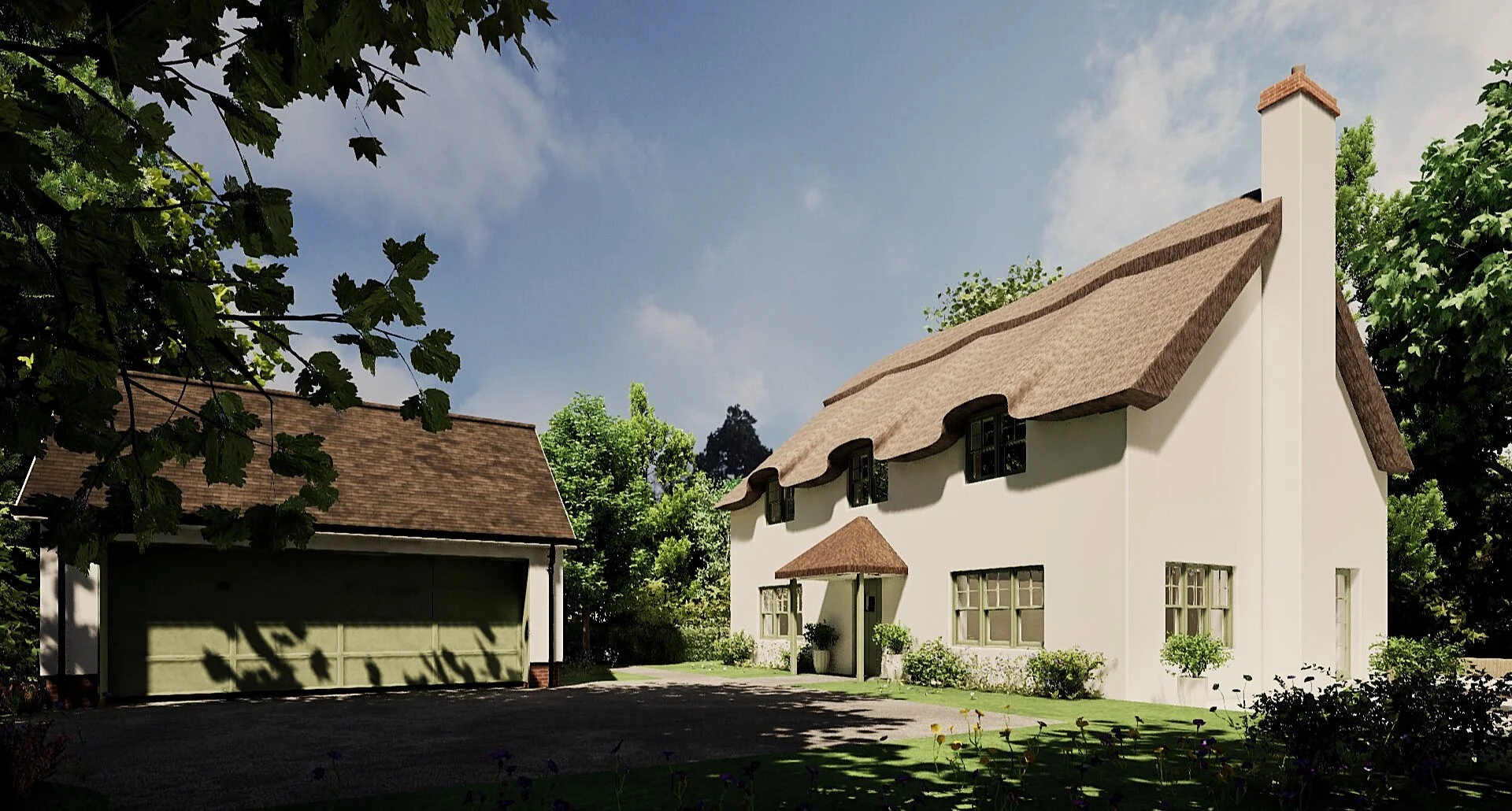 Each house is individual and based on traditional forms with pitched roofs utilising a mix of slate, tile or thatch to mirror the nearby houses with the walls finished in brickwork, painted brickwork, render or timber cladding. Chimneys are incorporated to vary the roof line as are expressed roof timbers, traditional moulded bargeboards and dormer windows.