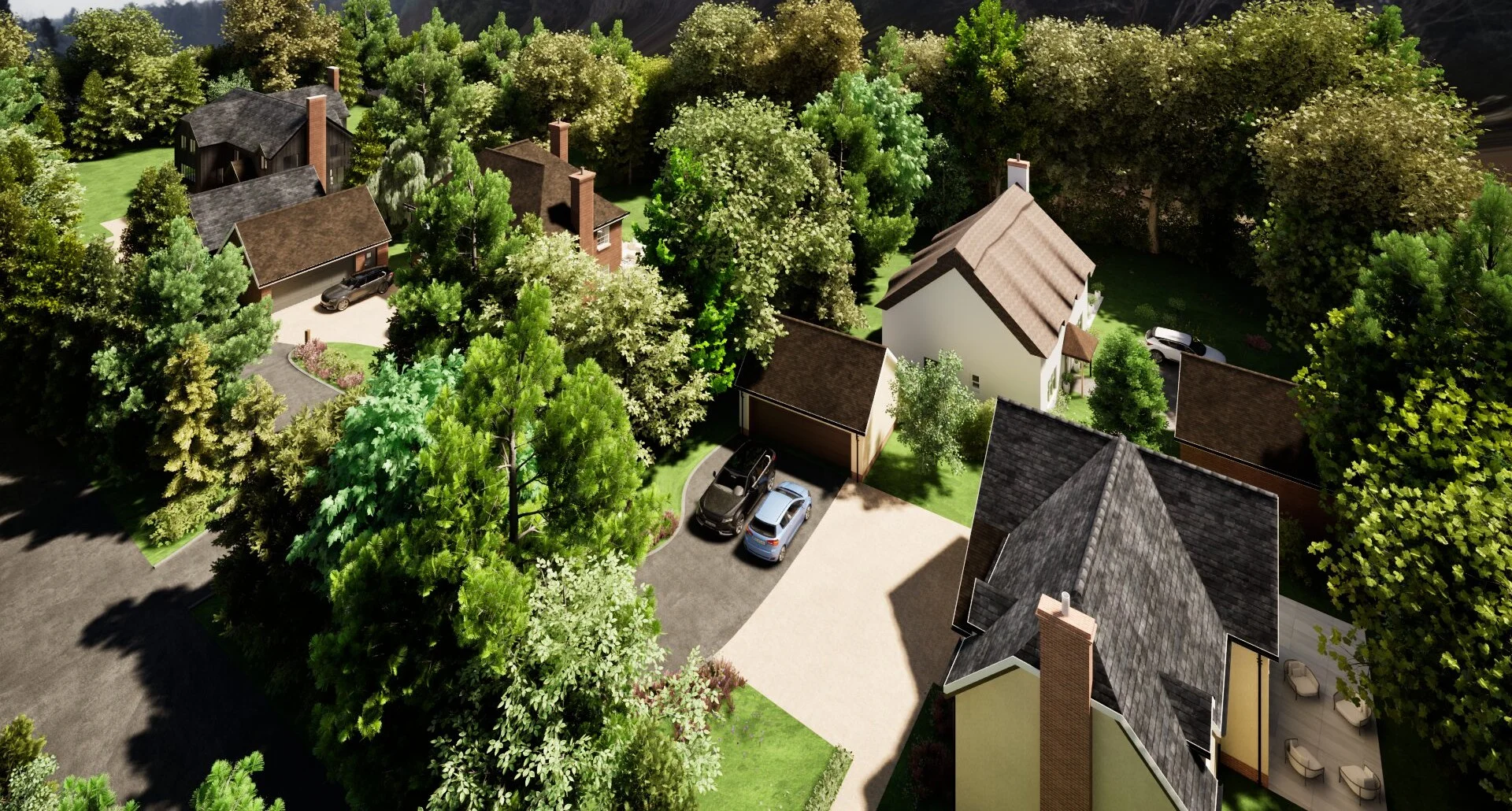 The intention is to appear as if the houses have grown organically over time rather than being part of a development built together.