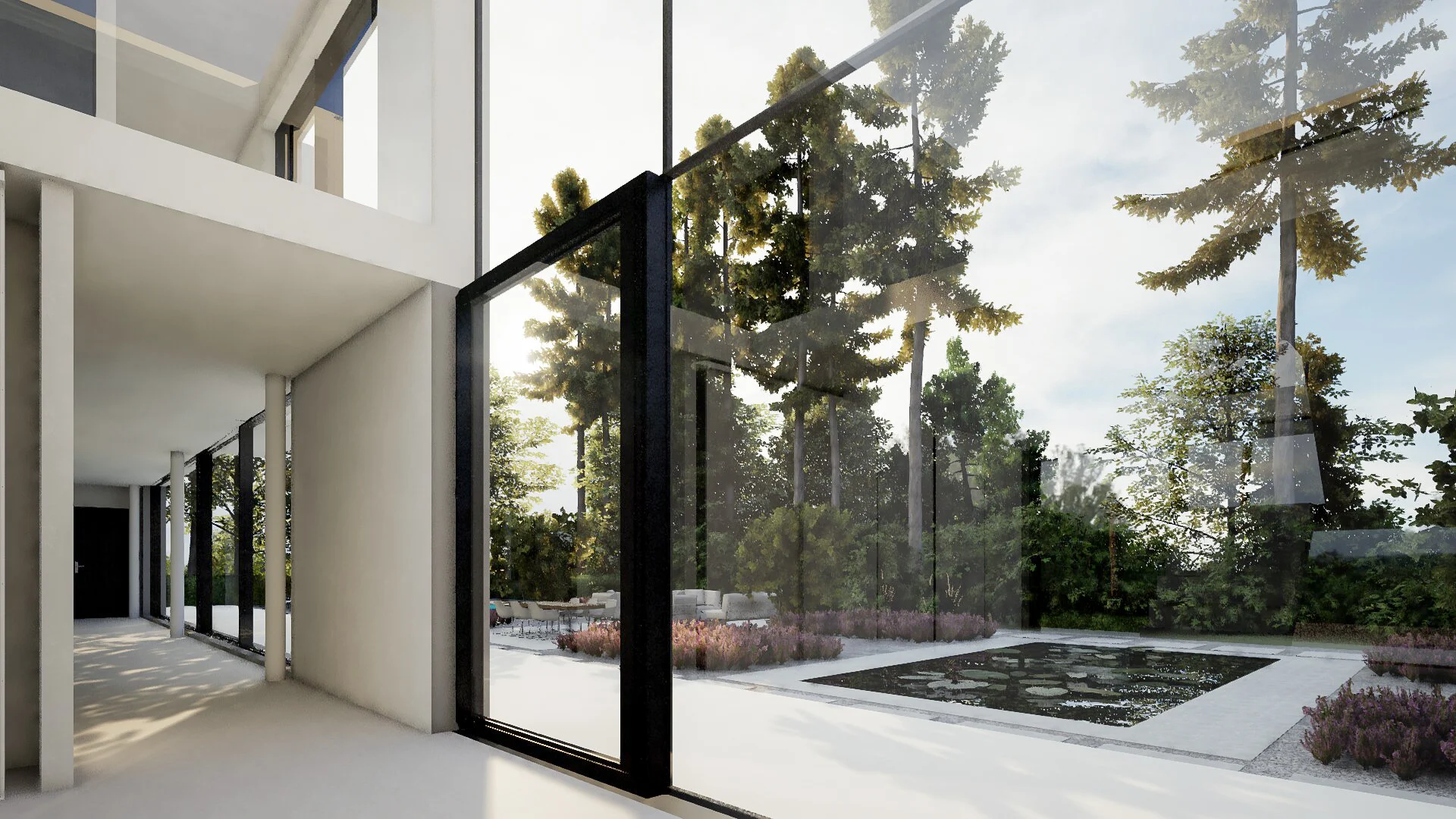 The first floor is split into two sides, the first of which incorporates a guest suite with private balcony. A bridge access leads to the three family bedrooms, the master having a private balcony whereas the junior bedrooms sharing a balcony.