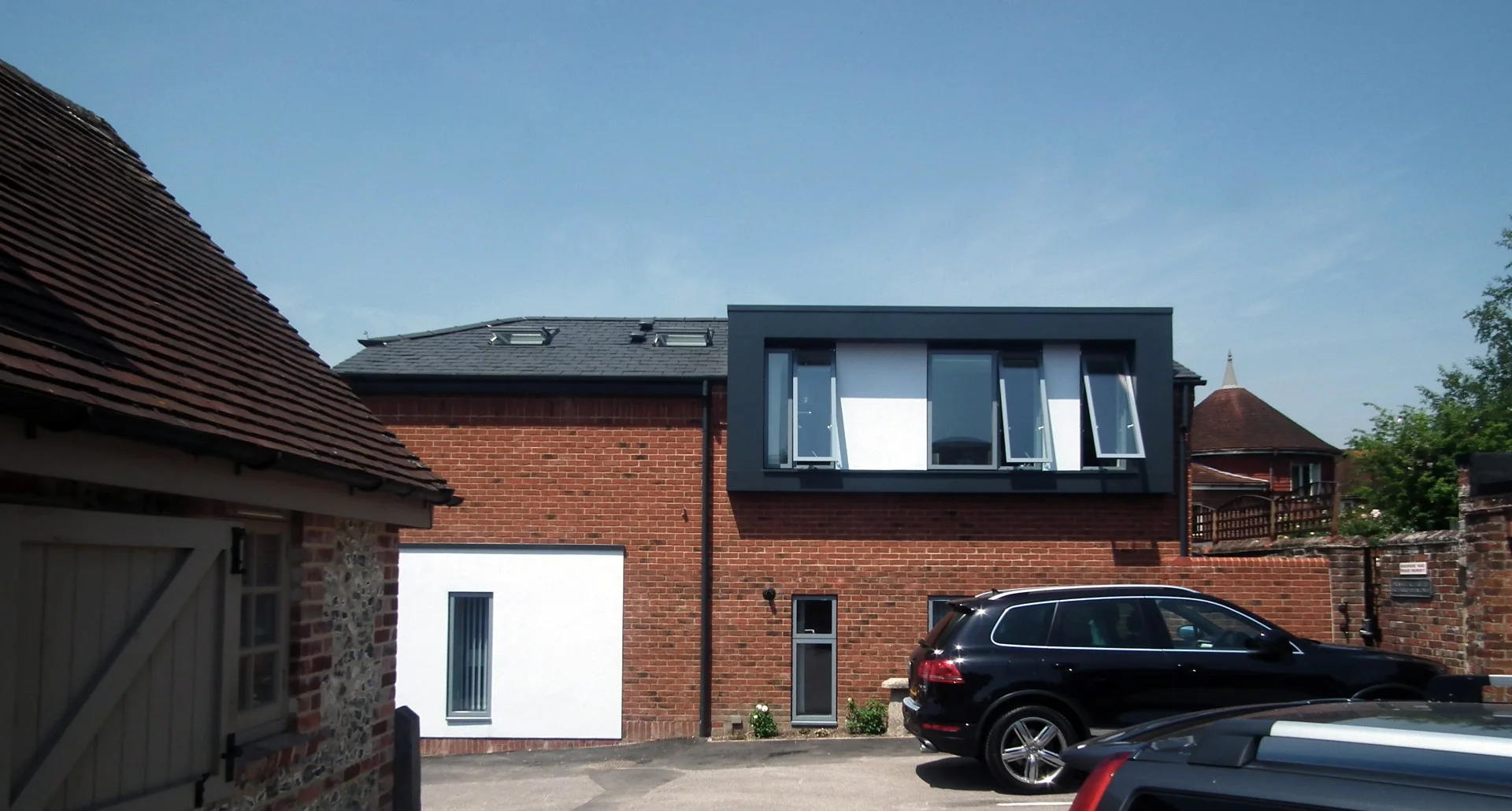 The house is on a brownfield site in the centre of Alresford. It had previously been occupied by a derelict storage building and car park which served the adjacent house where the client had previously lived.