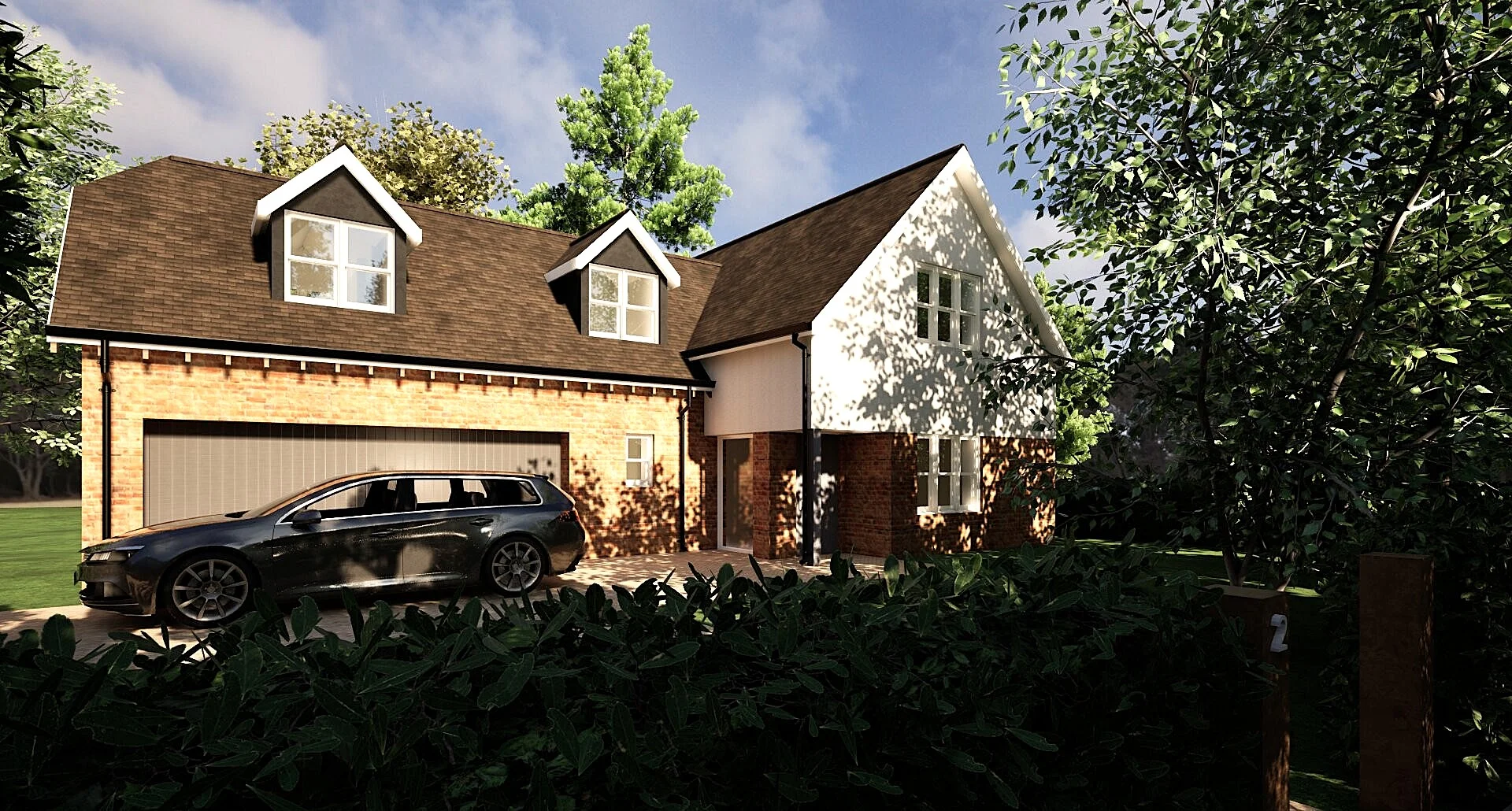 Each house is individual and based on traditional forms with pitched roofs utilising a mix of slate, tile or thatch to mirror the nearby houses with the walls finished in brickwork, painted brickwork, render or timber cladding. Chimneys are incorporated to vary the roof line as are expressed roof timbers, traditional moulded bargeboards and dormer windows.